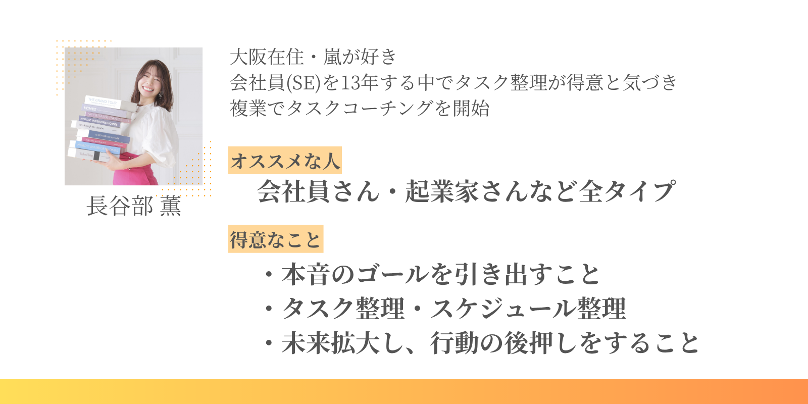 長谷部と繋がっている方は私がおすすめのタスクコーチをご連絡するのでご相談ください